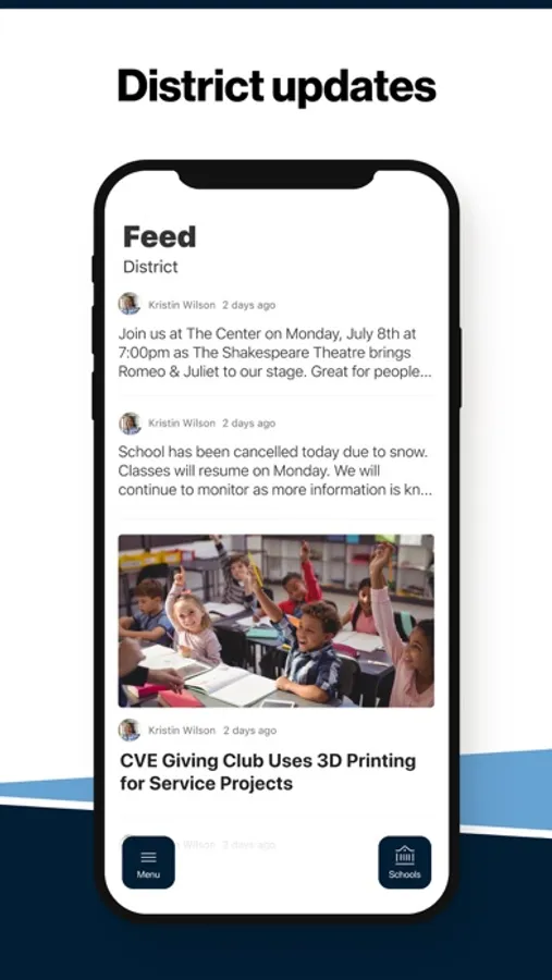 In the Live Feed is where you'll find updates from the administration about what's going on in the district right now. Whether that's celebrating a student's success, or reminding you about an upcoming deadline.