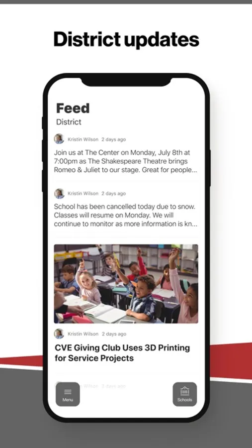In the Live Feed is where you'll find updates from the administration about what's going on in the district right now. Whether that's celebrating a student's success, or reminding you about an upcoming deadline.