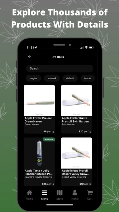 Search and compare products by Category, Brand, or Strain on our live menu. When you find what you're looking for, just put it in your cart, complete your order