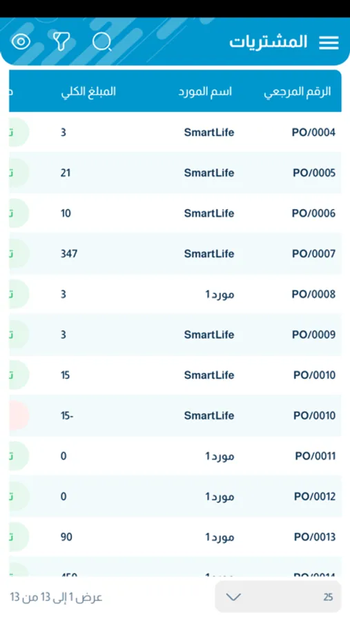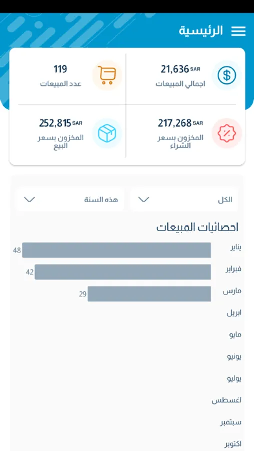 • مراقبة المبيعات والمشتريات مع إمكانية الفلترة والمقارنة بين الفترات.