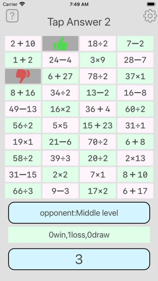 A sequential number starting from one will be displayed, so tap the cell whose calculation result is that number before your opponent.
