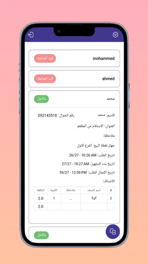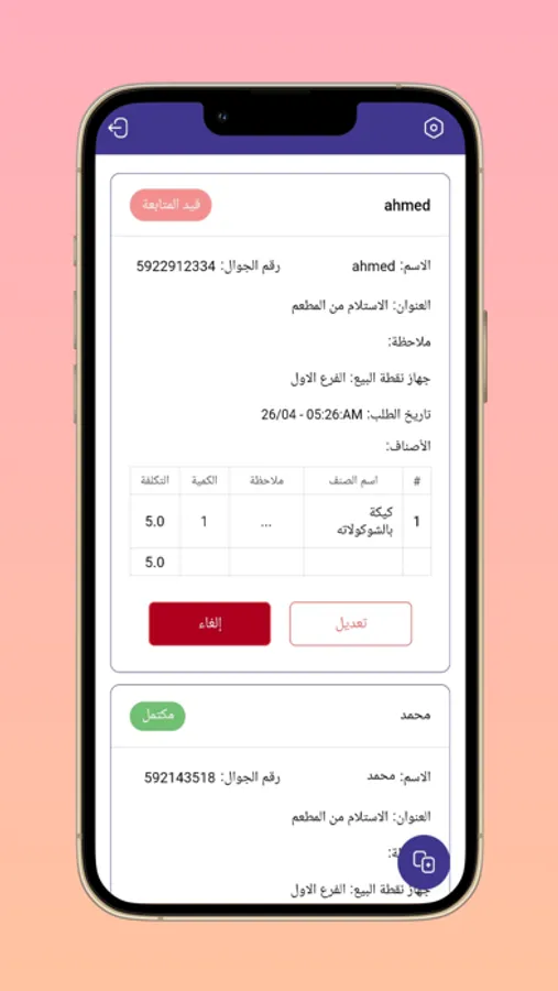 تطبيق لادارة الطلبات الخارجية في المطاعم