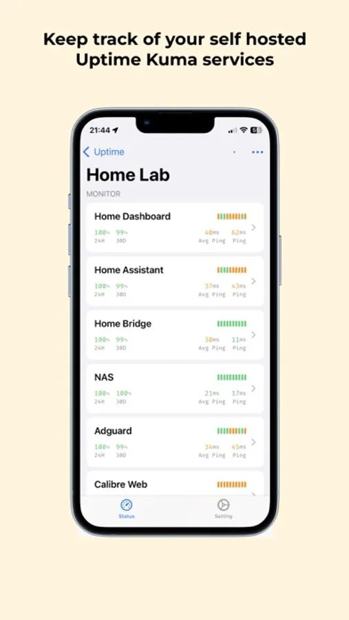 Uptime Kuma Manager allows you to connect to your Uptime Kuma servers and monitor the services directly from your phone. With a clean and simple interface, you can quickly view the status of your services and receive notifications when they go down.