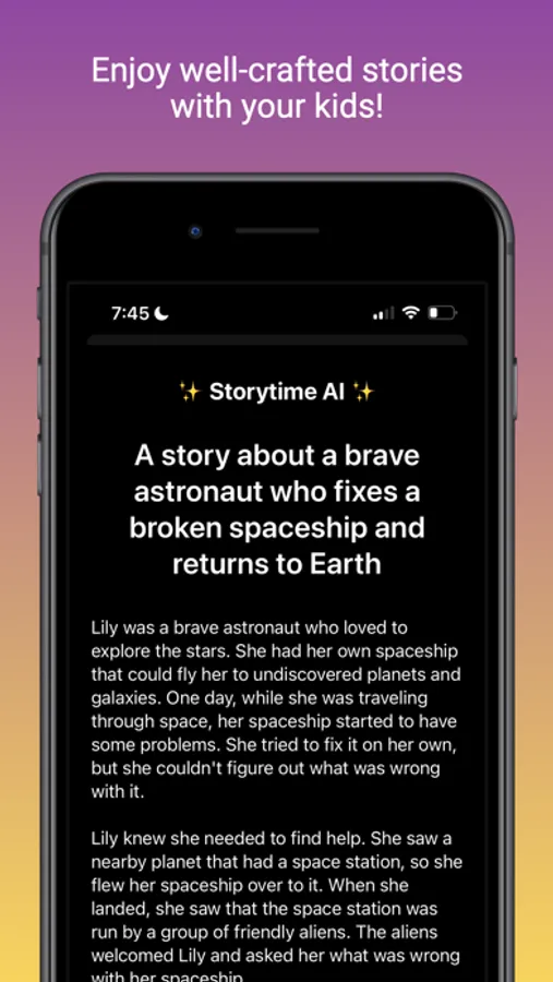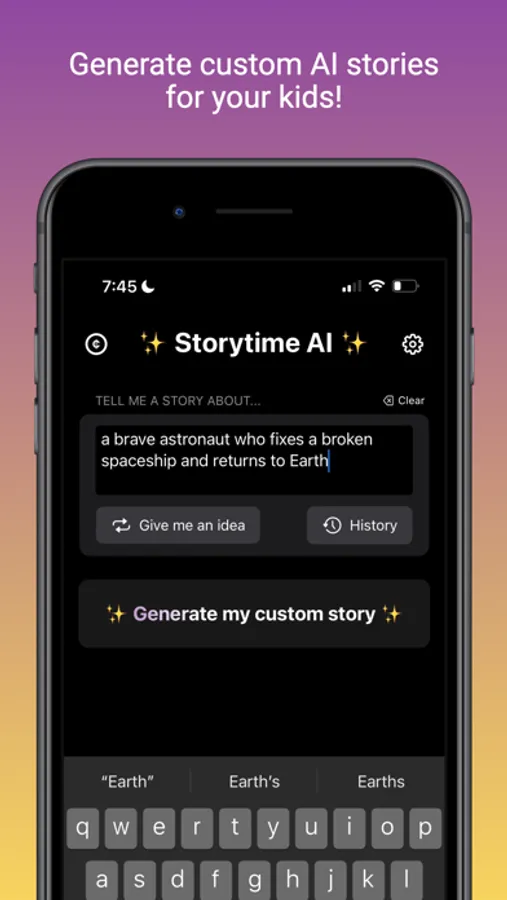 Storytime AI lets you generate unique, personalized stories to your kid's liking! You can adjust settings for age-appropriateness, story length, or to include your kid’s name in the story. You can then write your own prompts to direct the AI's storytelling (or easily use provided story themes). Also available in multiple languages, including Spanish, Chinese, German, and many more!