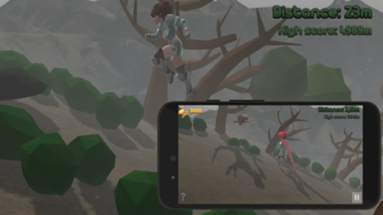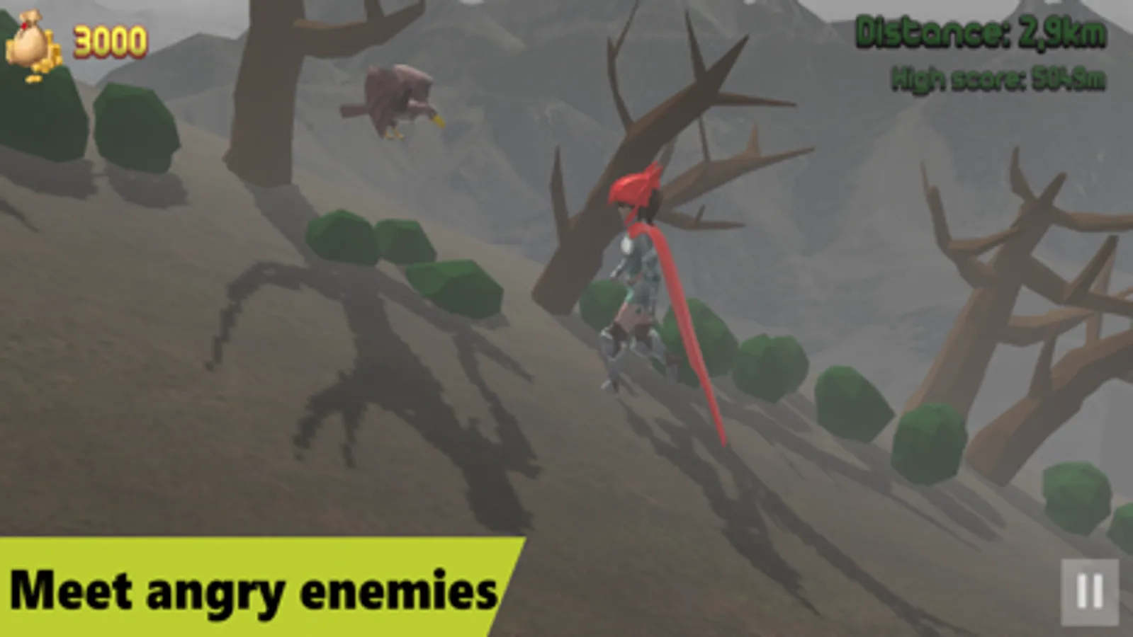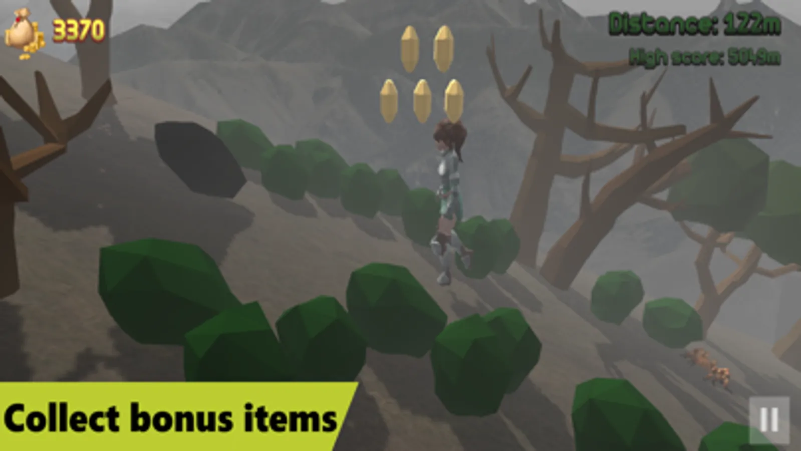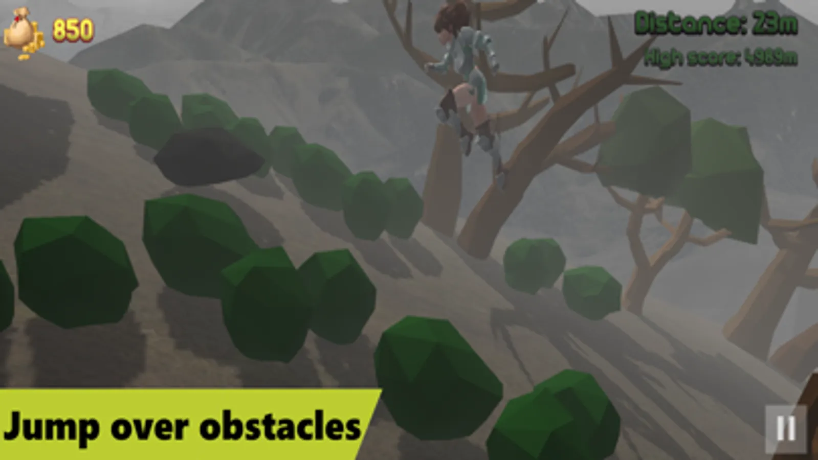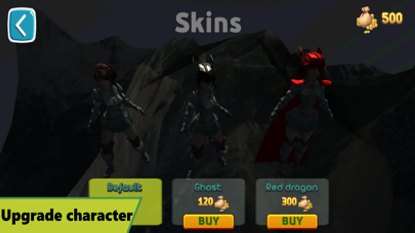 Tap to jump over the stones and creatures like spiders and eagles, collect coins and useful bonuses and climb the hill. Bonuses will help you to survive longer and to collect bigger amount of coins. Use coins to upgrade your character by buying new skins.