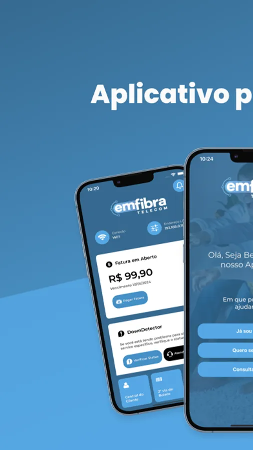 Visando facilitar as relações com seus clientes, EmFibra Pina conecta-se a você através do novo APP. Agora você pode contar com mais essa facilidade prática e segura, de qualquer lugar e a qualquer hora.