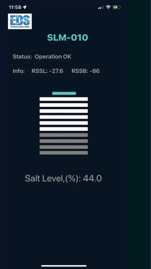 SLM-010 is Bluetooth Water Softener Salt Monitor unit. SLM-010 communicates with iPhone or iPad and short-range LiDAR module TF-Luna A01. The iPhone (iPAD) application continuously receives salt level data and operational status and indicates them in real time. iPhone application also, produce visual and sound alarm with text message (if it is set) in case if salt level is less than 40%.