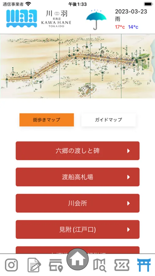 東海道五十三次の川崎宿をあなたと一緒に歩ける街ぶらアプリ