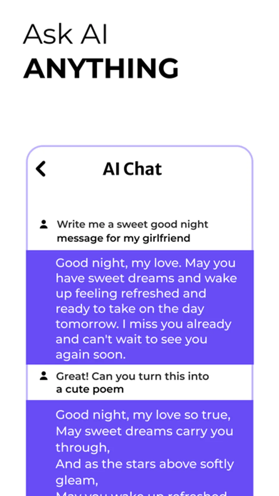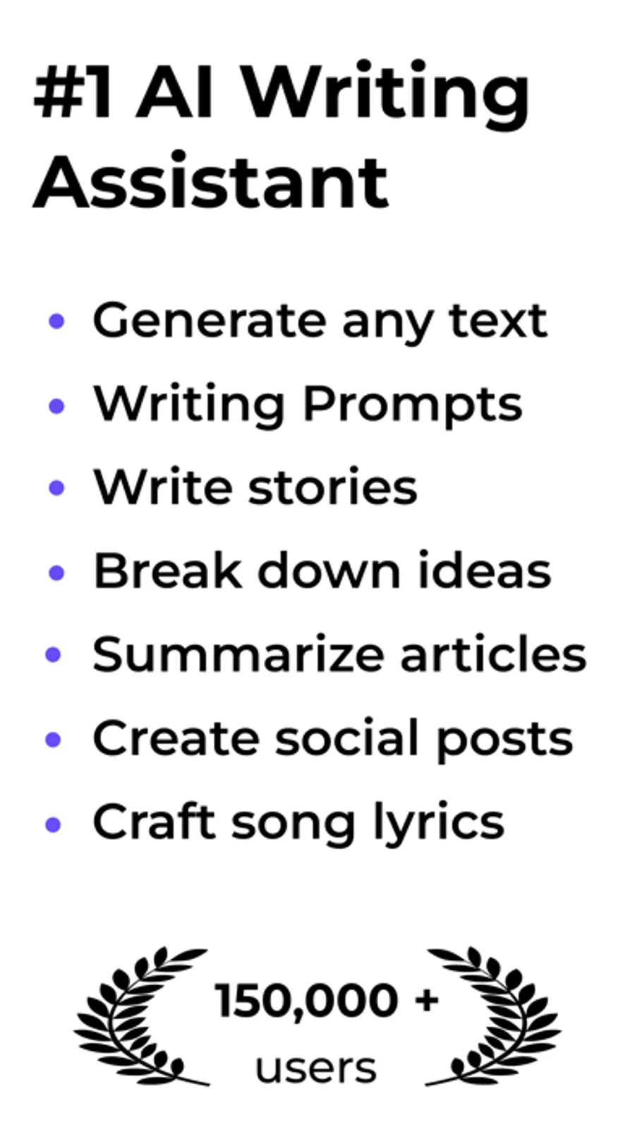 - Writing assistant for essays, songs, poems, lyrics, and more.