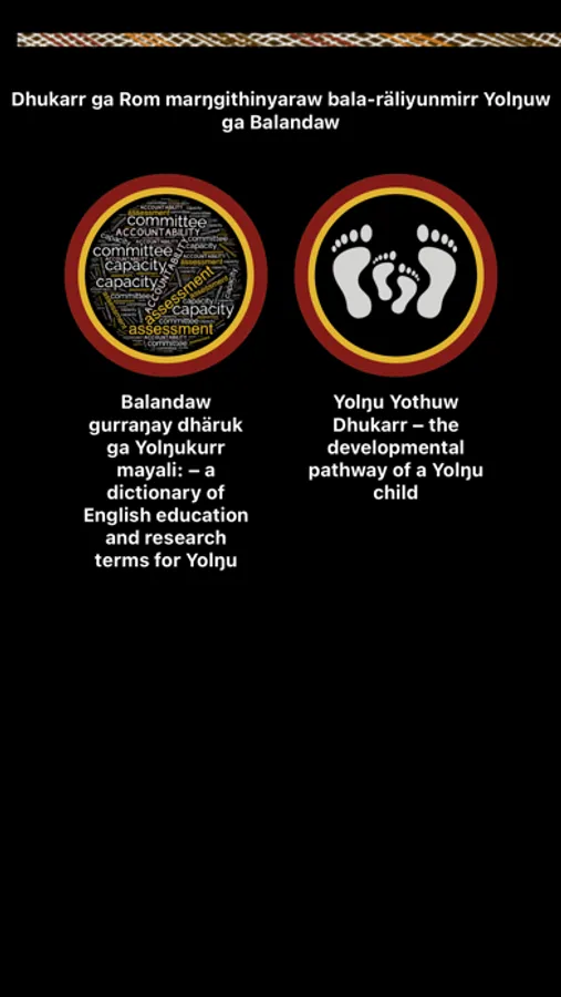Yolŋu are First Nations Australian people from North-East Arnhem Land in the Northern Territory of Australia; Balanda are non-Indigenous people. The LearningPathways YolŋuBalanda app supports Yolŋu to understand Balanda education systems and Balanda to recognise and respect Yolŋu education systems.