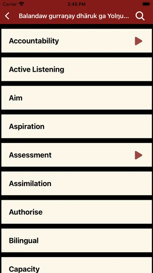 - a dictionary of English terms that Yolŋu wanted explained in Djambarrpuyŋu (a Yolŋu language);