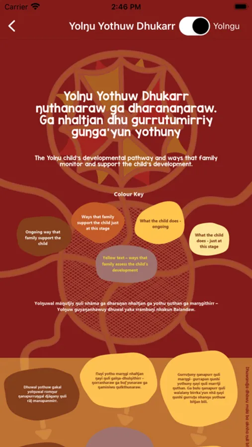 - a Yolŋu child’s developmental pathway including ways that family monitor and support children’s development;
