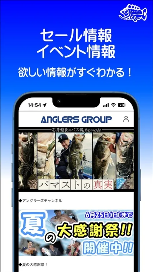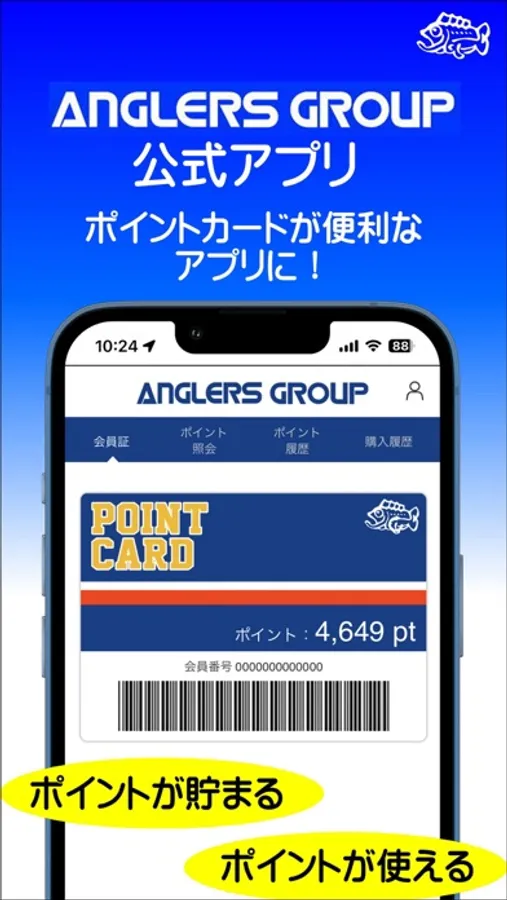 釣り具アングラーズ公式アプリは、関西以西を中心に幅広く展開するアングラーズグループ店舗にて会員証としてご利用いただけます。またイベントなどのお知らせやお得なクーポンをご利用いただけるアプリです。