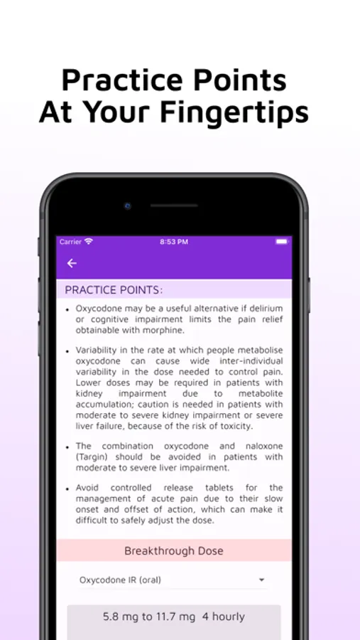 Calculate breakthrough dosing with ease, convert between opioids quickly and accurately, and stay on top of best practices with access to up-to-date practice points. Instantly see which formulations are available with direct links to a pharmaceutical formulary. The app ensures you always have the latest formulation information at your fingertips.