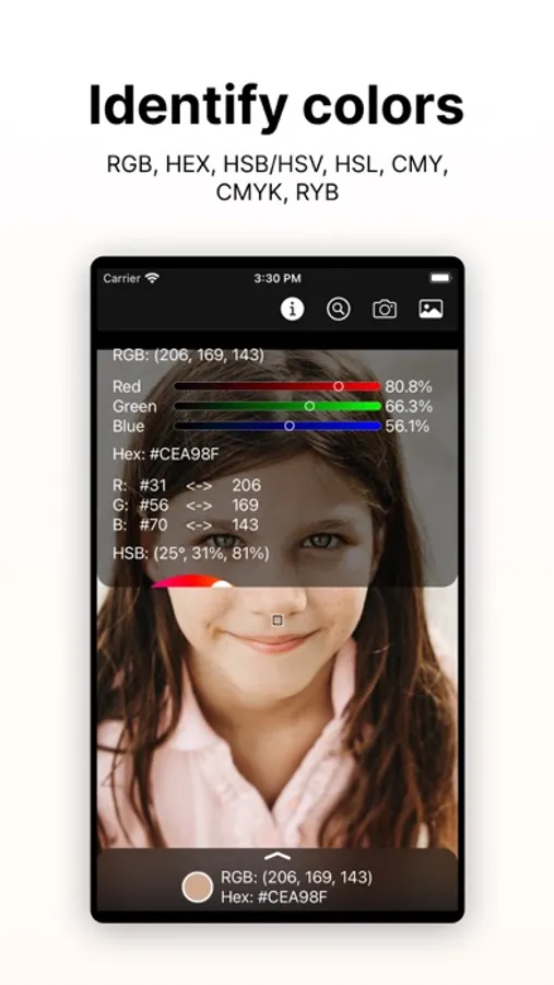 • The app supports various color models, such as RGB, HSL, and CMYK, enabling users to select colors based on different parameters.