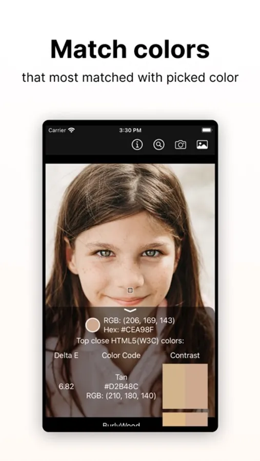 • The app also shows the closest HTML color code for the selected color, making it easy to match colors with their corresponding HTML code.