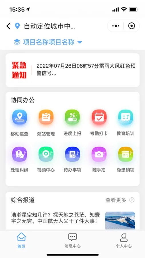 功能模块包括:任务派发、旁站管理、进度上报、考勤打卡、教育培训、处理纠纷、视频中心、待办事项、随手拍、隐患销项等。