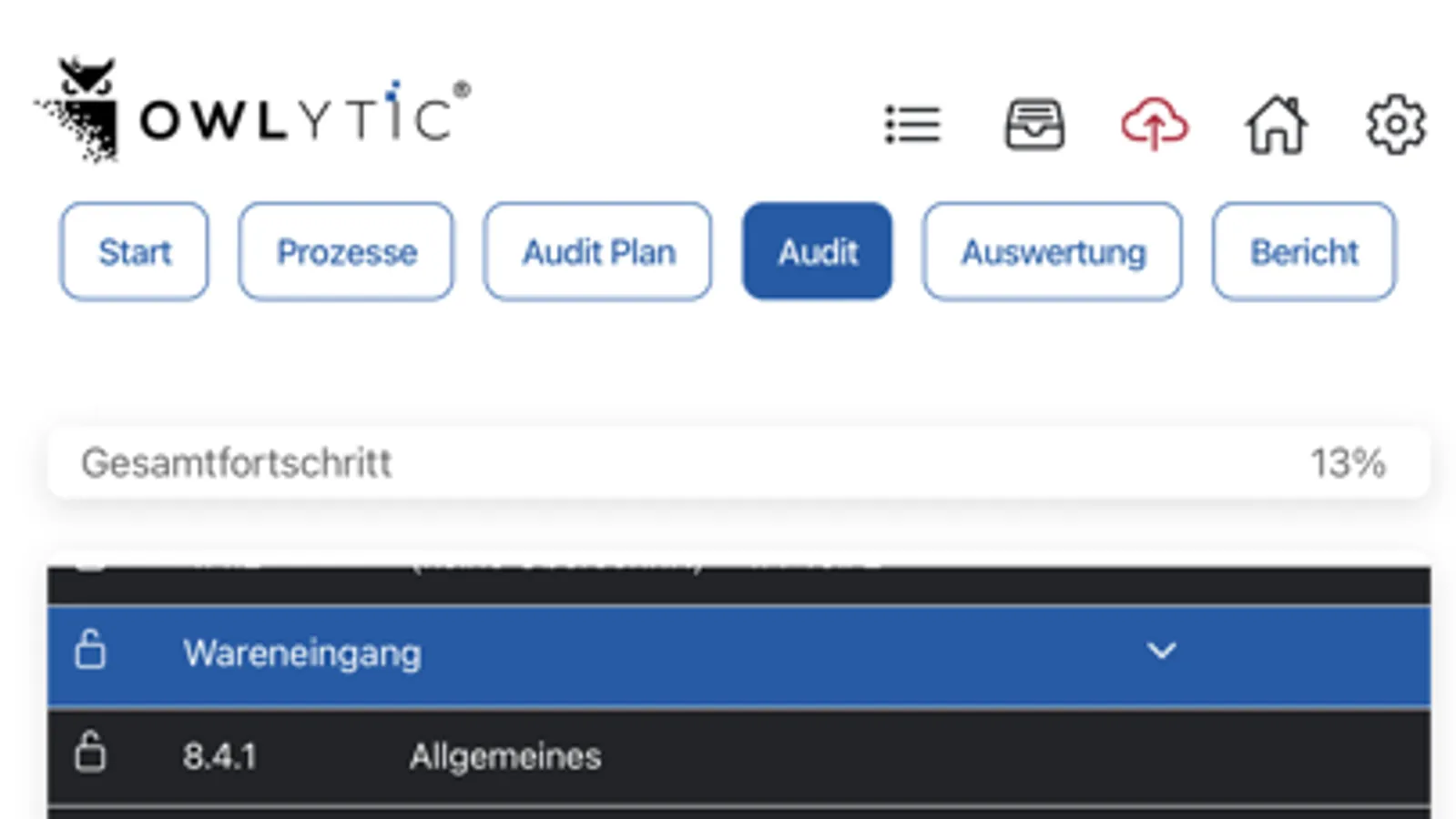 Du kannst während des Audit nicht online sein? Owlytic erkennt dies automatisch und dein Audit geht einfach weiter. Sobald du online bist synchronisieren wir deine Daten, maximale Sicherheit für ein gutes Gefühl.