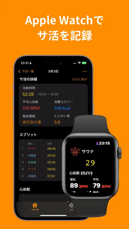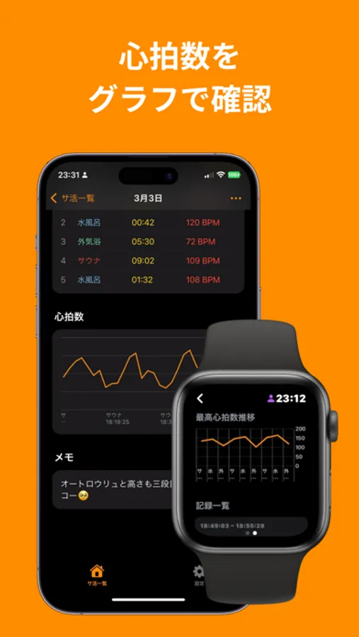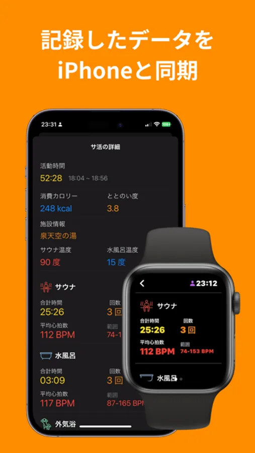 心拍数や入浴時間を計測してあなたのサ活を可視化します。