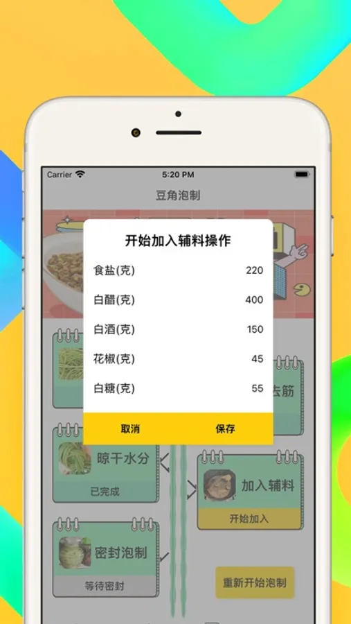 酸豆角的泡制方法有很多种、辅料的选材及用量各异,本应用采用的辅料为食盐、白醋、白酒、花椒、白糖,用量大家可以自由选择尝试。