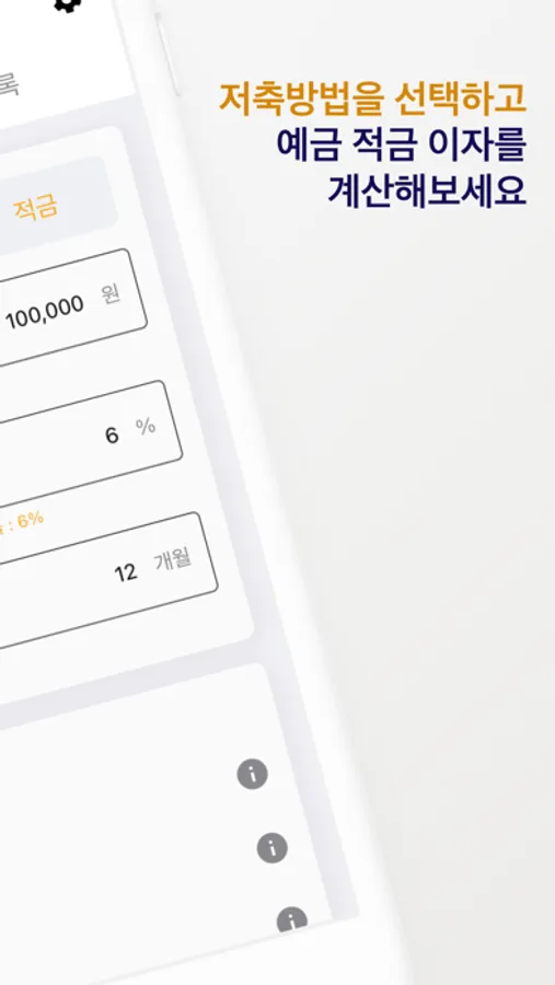 - 예금, 적금 저축 방법의 계산을 지원합니다.