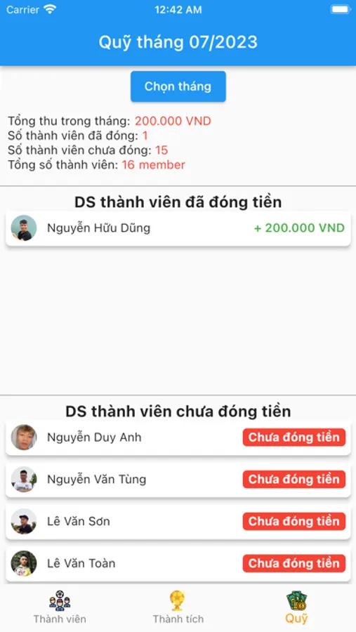 + Top thành viên ghi bàn nhiều nhất tháng