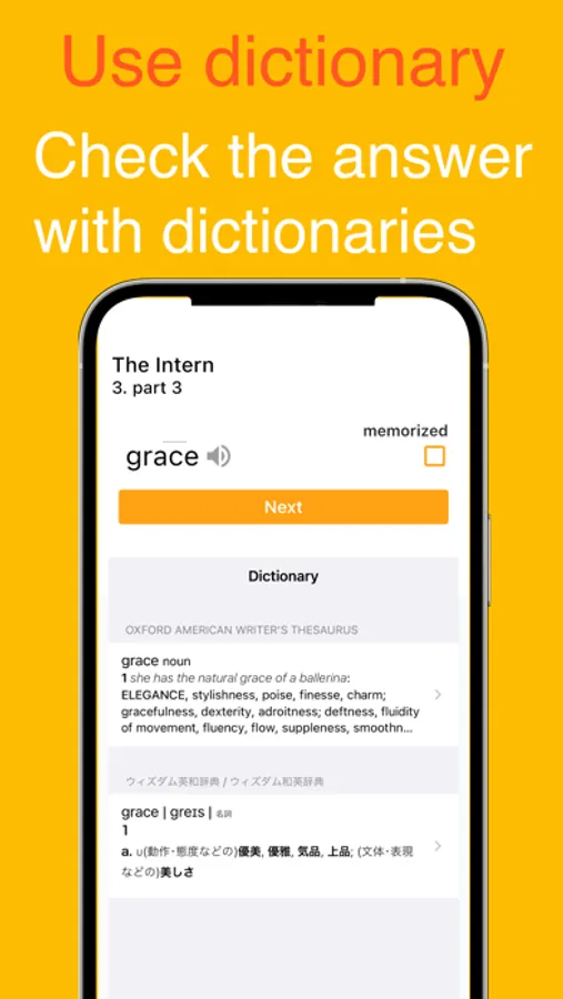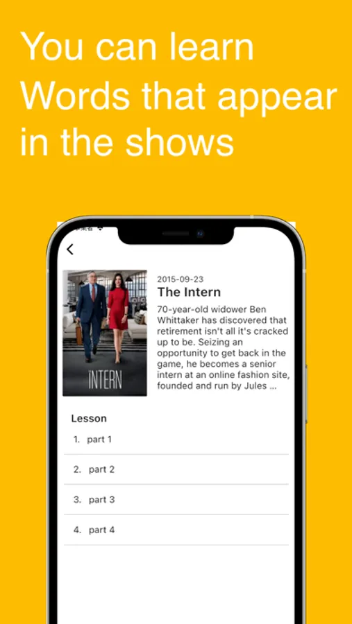 This is an app that allows you to learn English vocabulary using your favorite foreign dramas and movies. You can learn words from a list of English vocabulary that appears in the selected work. By memorizing the words with this app before watching the English-language work, you can enjoyably and efficiently learn English. Studying with your favorite movies and foreign dramas keeps motivation high and makes learning English words fun. The available works will be continually updated in the future. If you can't find the title or episode you want, feel free to request it from your personal page.