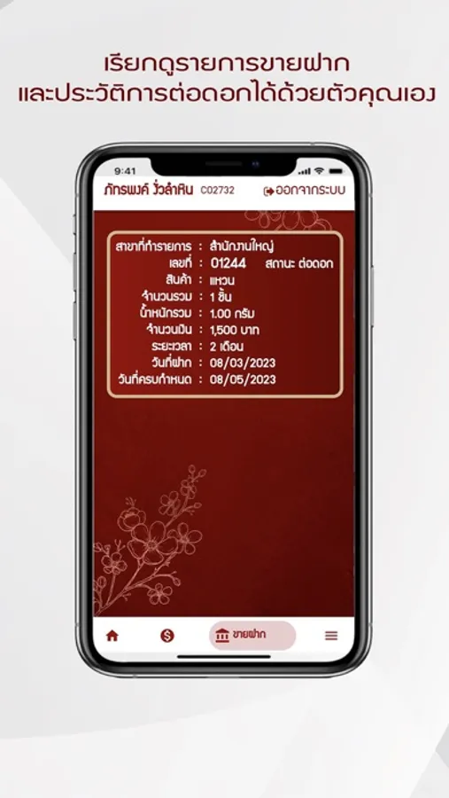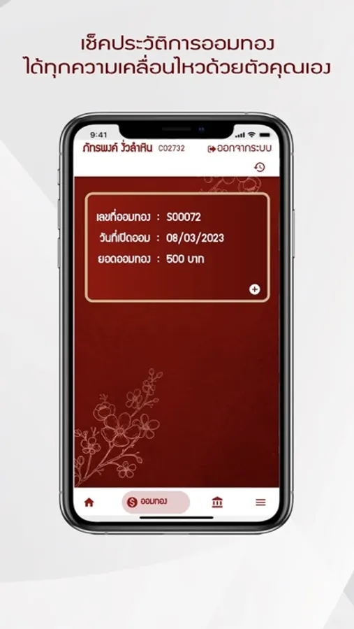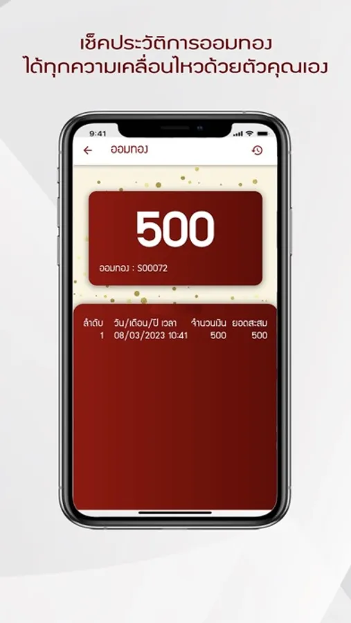 • เพิ่มความสะดวก สามารถเช็คยอดออม คะแนนสะสม และรายการขายฝากที่เราทำธุรกรรมกับทางร้าน