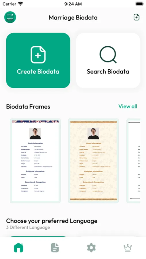 Marriage biodata Builder offers to build your biodata easy and super fast. And also you can download easily with choosing your suitable frames and download it. By using Marriage biodata Builder you can build your biodata for marriage purpose easily and in short time. Just you have to fill-up your basic details and your bio data is ready you can Download it and use it anywhere.