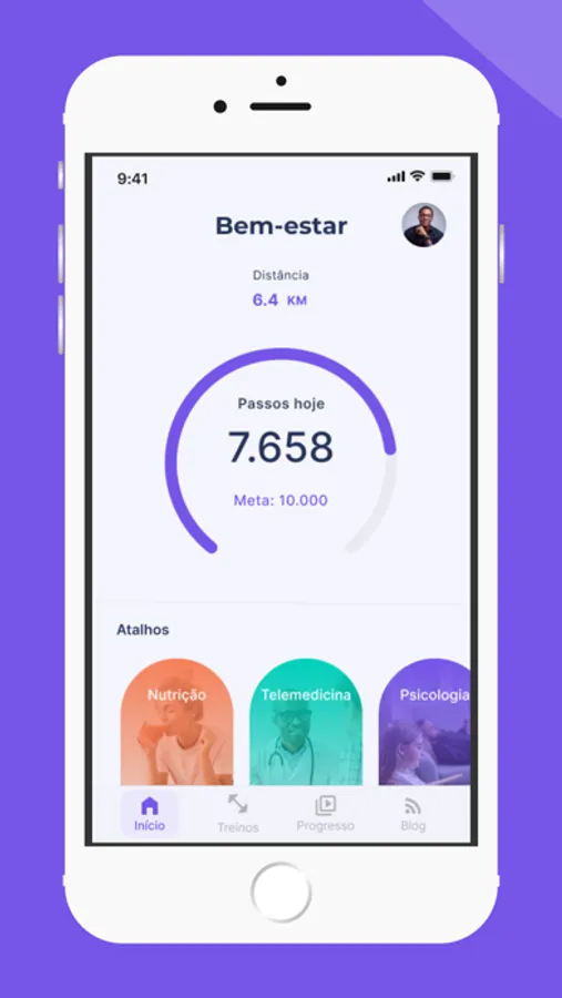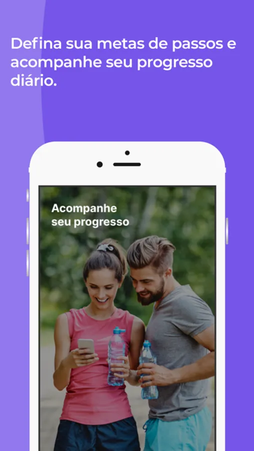 Nenhuma pulseira ou outro hardware é necessário para começar. Funciona inteiramente a partir do seu telefone sem configuração adicional. Você acompanha todas as suas caminhadas e passos, esteja o telefone na mão, no bolso, na jaqueta ou na bolsa. Nosso app tem um link com o app Apple Health, dessa forma você pode visualizar os seus passos, calorias, distância e tempo ativo também no Apple Watch.