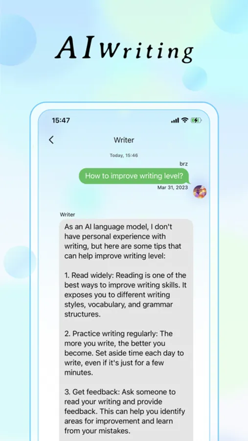 AI Chat: You can chat with TA on any topic, and TA can give some constructive responses.