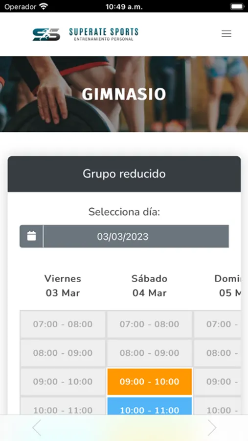 Aplicación en la que los usuarios podrán realizar las reservas para poder realizar su entrenamiento personal. Tendrán siempre disponibles en el apartado de mis reservas, las reservas realizadas.