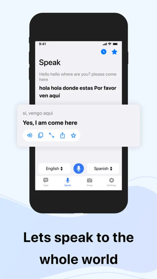 •Speak to translate: Dictate the text you wish to translate and let the app speak or display the translation.
