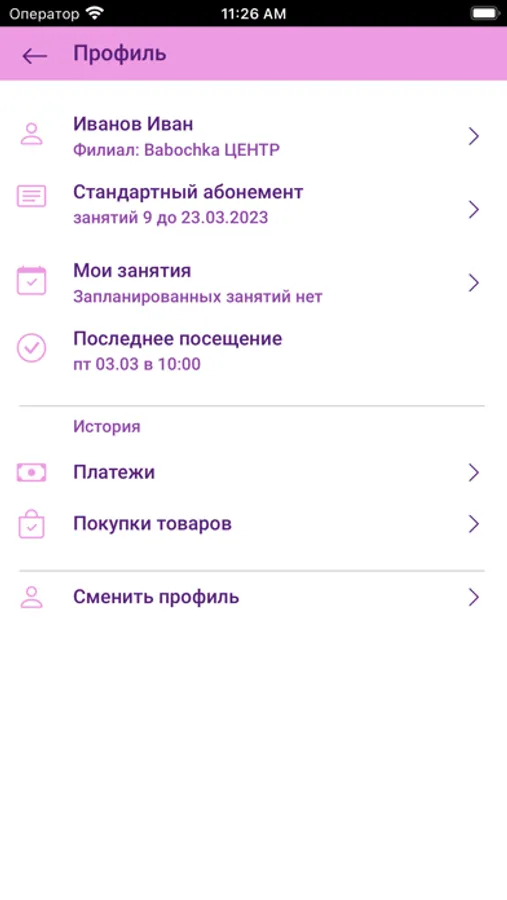 - следить за своими абонементами, посещениями и платежами;