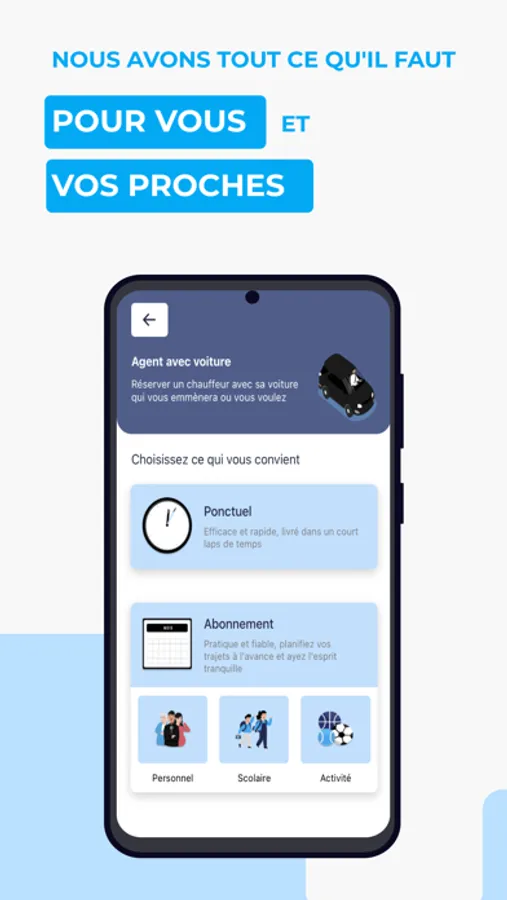 Nous disposons de plusieurs offres d'abonnement qui vous permettent d’éviter des commandes multiples quotidiennes en intégrant une seule commande au mois pour vos besoins scolaires (dépôt récupération des enfants), sport, travail … Le chauffeur aura la visibilité continue à votre besoin.