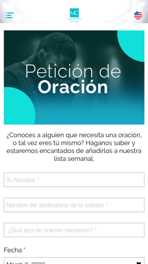 El App movil “Maranatha Church” tiene como fin ser un canal de bendicion para todas las personas que asistan a nuestra iglesia y deseen ser parte de nuestra comunidad donde el amor de Dios esta sobre todas las cosas. Aquí encontraran alimento para el alma, calendario de nuestros eventos, formulario de peticiones de oracion, conectar con mas personas de la iglesia y mucho mas.