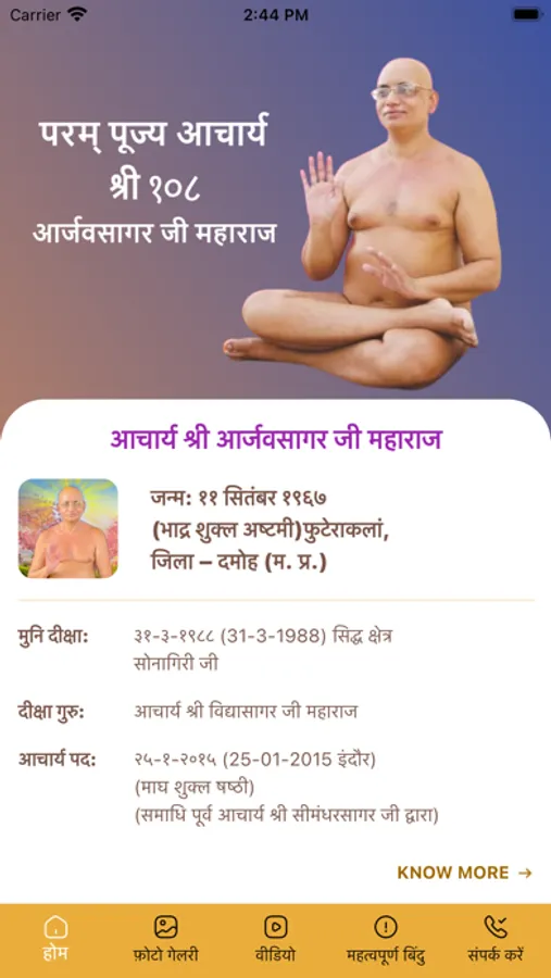 * All information about Acharya Shree 108 Aarjavsagar Ji Maharaj and his disciple(s) such as Muni Shree Bhagyasagar Ji and samath Muni & Aryika Sangh etc