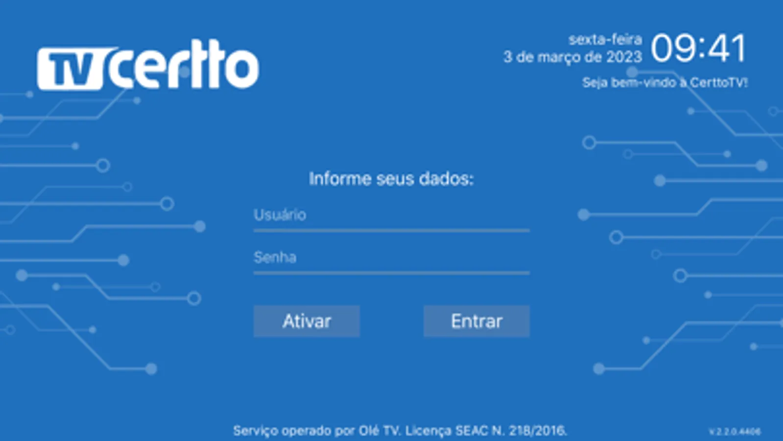 Operação legal de TV por assinatura operado pela Olé TV - Licença SEAC Nº 2018/2016.