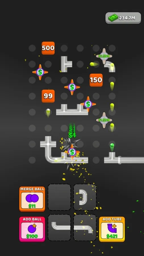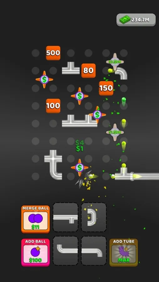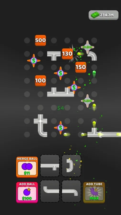 Create your own system using tubes and navigate balls through these tubes