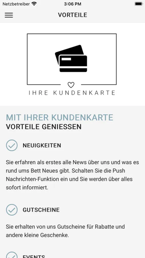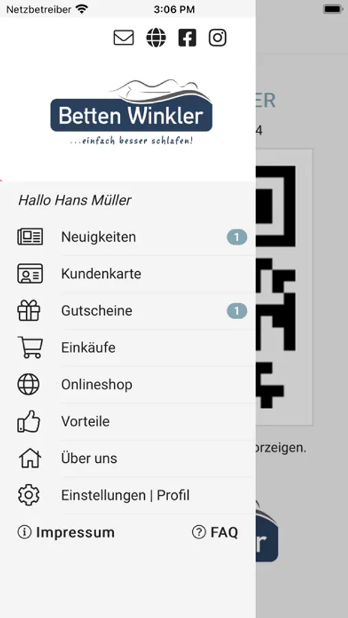 Bitte beachten Sie: Die App gilt exklusiv für unsere Betten Winkler Kund:innen. Falls Sie noch kein Kunde bzw. keine Kundin bei uns sind, schnell in einer unserer Filialen vorbeikommen oder direkt über die App als Neukunde bzw. Neukundin registrieren und schon bekommen Sie Ihre Zugangsdaten.