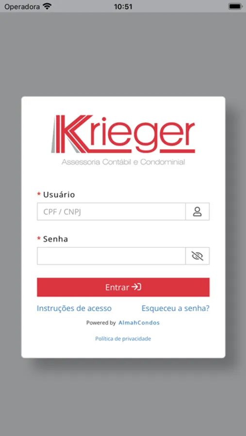Este aplicativo é exclusivo para usuários da Krieger Assessoria Contábil e Condominial.