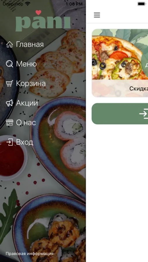 "Удобное мобильное приложение «PANI» поможет Вам быстро оформить и оплатить доставку, оформить предзаказ или самовывоз завтраков, пиццы, роллов, горячих блюд, закусок, напитков и десертов.