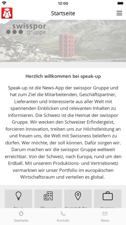 speak-up ist die News-App für Mitarbeitende, Kunden, Partner und Lieferanten der swisspor Gruppe sowie für alle, die sich für nachhaltiges Bauen, eine energieeffiziente Gebäudehülle, Design und Architektur interessieren.