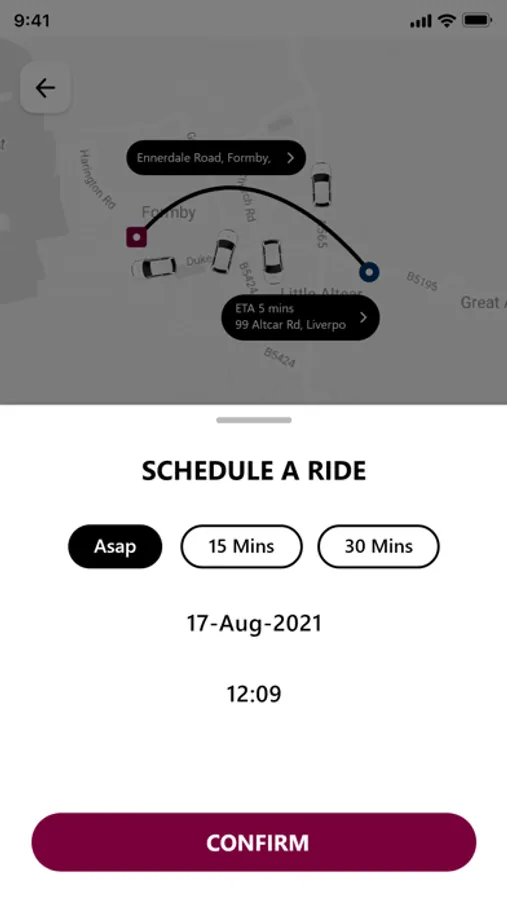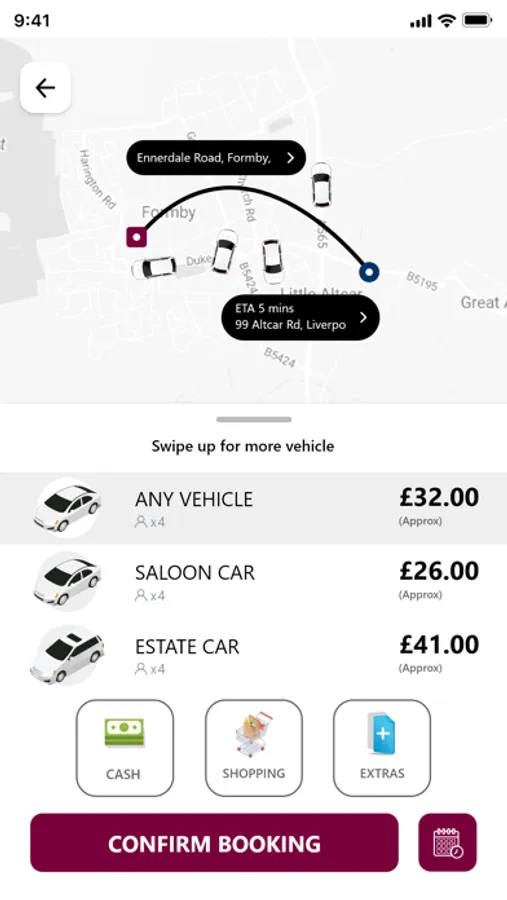 You can place the booking directly on our map, and see how many available cars there are nearby.