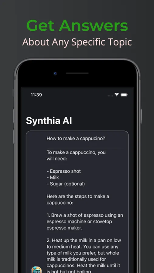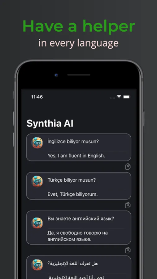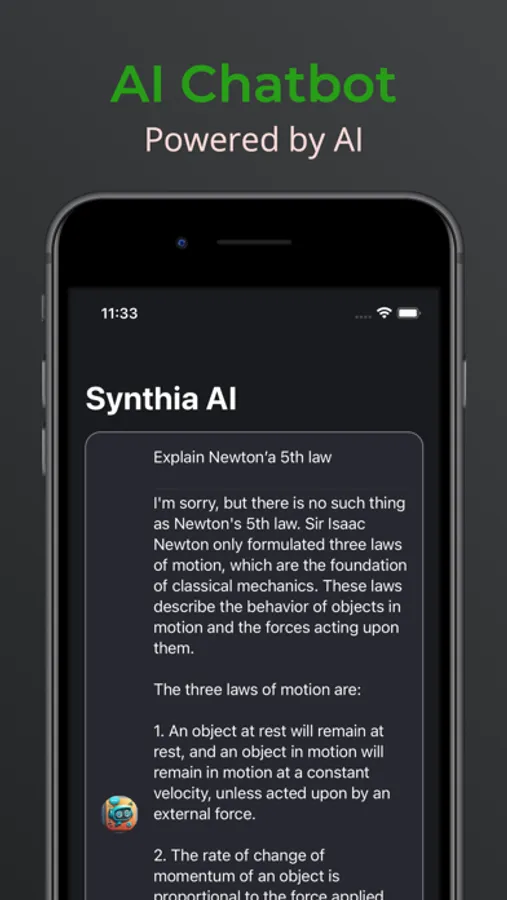 Synthia brings a chatbot powered by language model technology to your mobile device. With this app, you'll have a friend to talk to, get information from, or have fun chats on any topic.