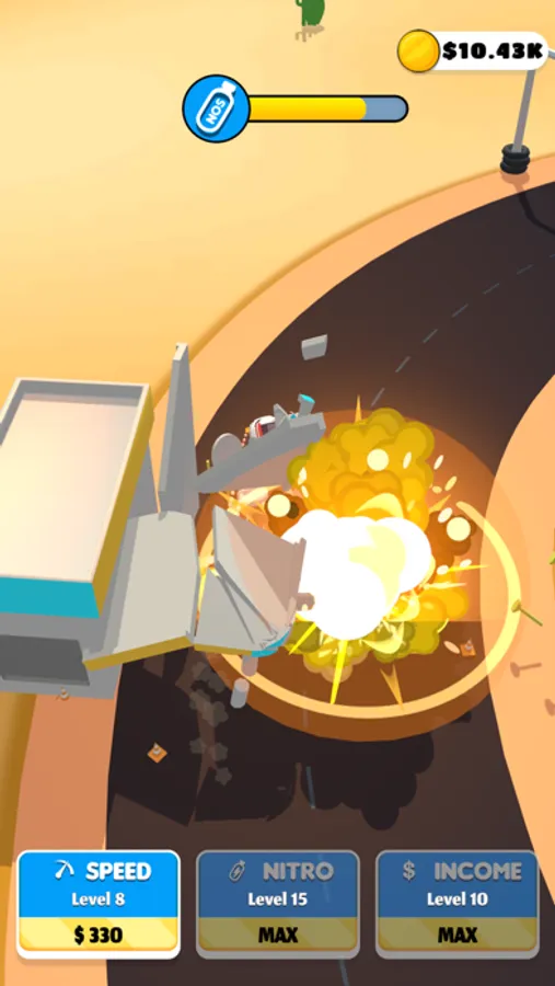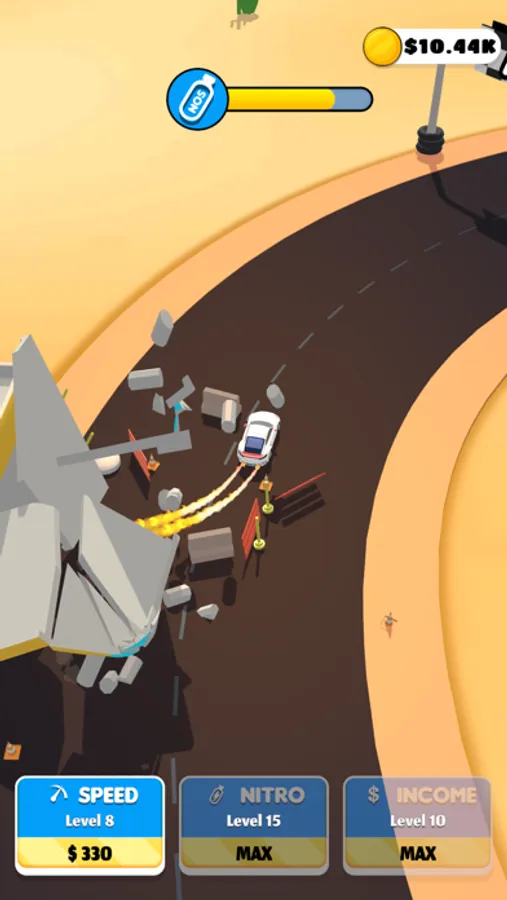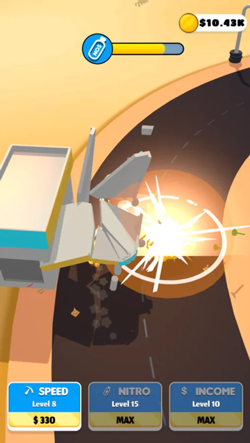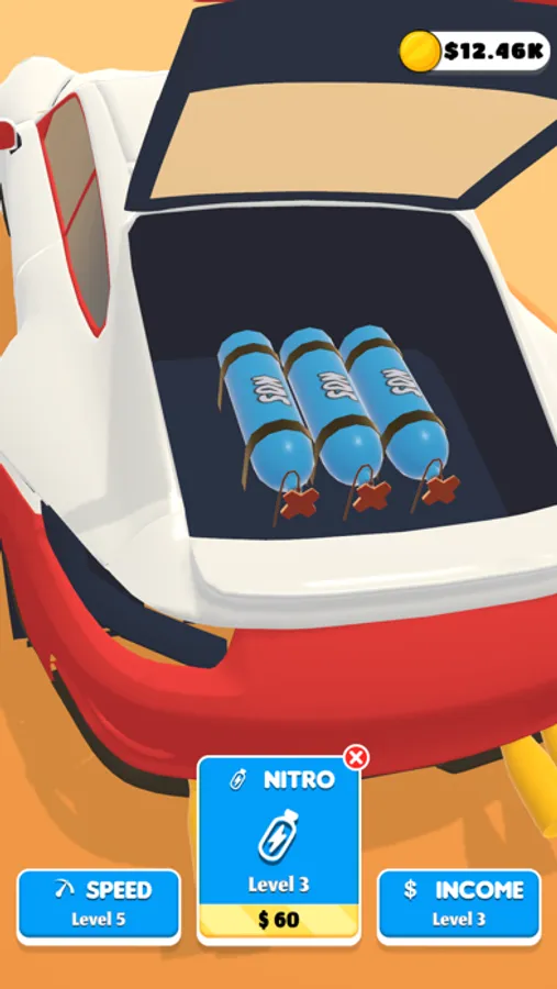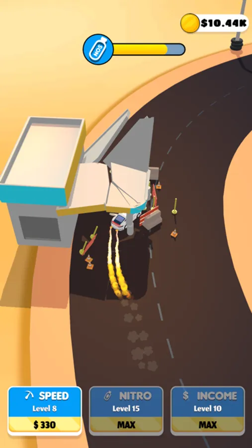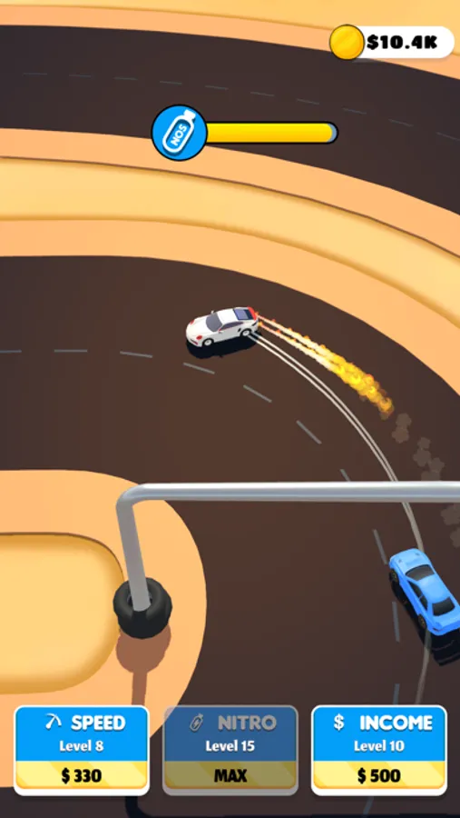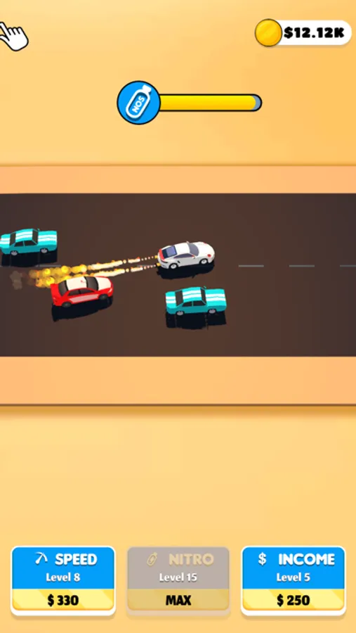 Hold on the screen to use the Nitro and zoom past other cars. Get a close up of your car's engine and boosters to upgrade them.