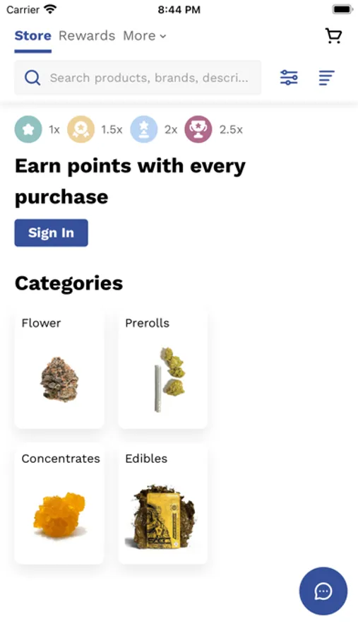 - Merch: Apparel, accessories, bongs, filters, papers, lighters, grinders