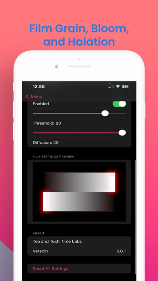 *Film names in the app are just for reference and do not represent the film stock. Where possible they try and replicate the characteristics.