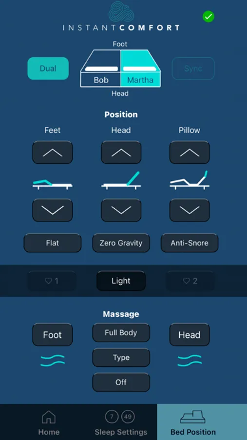 The Instant Comfort® App is a great addition to both your Instant Comfort® air adjustable mattress as well as your Reverie® adjustable bed frame. With the Instant Comfort® App your iPhone or iPad quickly and easily replaces the wired mattress hand controls as well as your adjustable bed frame remotes. Now a swipe of the finger can help you have a perfect night’s sleep.