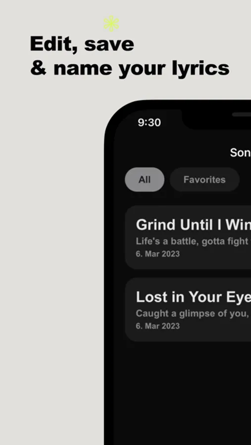 3. Favourites - highlight lyrics you like most, get an easy access to them